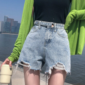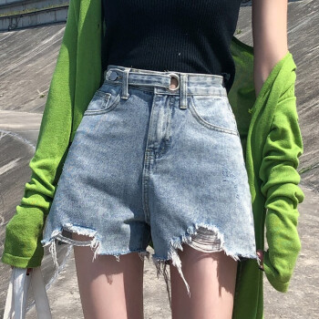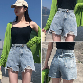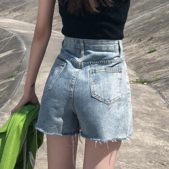 沫澜仟衣破洞牛仔短裤女2020夏季薄款韩版高腰显瘦休闲百搭裤子女网红阔腿a字热裤潮 2039浅蓝 XS |