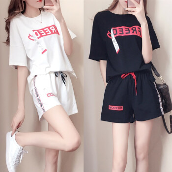 仙器 短裤女休闲套装女短裤运动服夏季新款2020网红时尚胖MM大码短袖T恤两件套潮 白色 M |