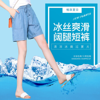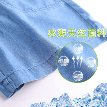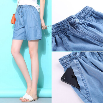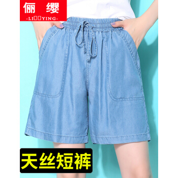 俪缨短裤女天丝牛仔五分裤女2020年新款学生休闲宽松外穿夏季薄款女士冰丝裤子松紧腰薄款垂坠阔腿裤女 图片色 L(建议110-120斤) |