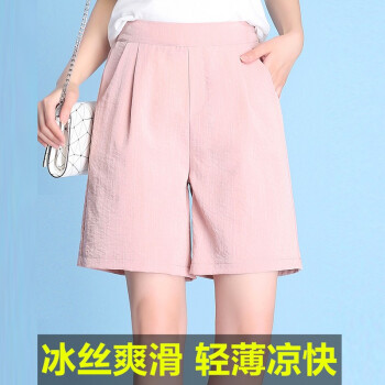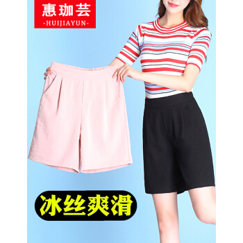 惠珈芸冰丝棉麻短裤女2020新款夏季宽松薄款高腰大码女装阔腿中裤五分裤大码胖mm宽松显瘦休闲裤女潮 粉色 此码勿拍.请拍自身对应码数 |