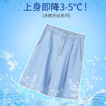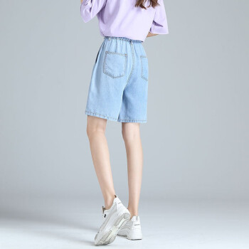 【精选女裤】Hizze天丝牛仔短裤女高腰2020年新款夏季薄款宽松百搭a字阔腿冰丝五分中裤休闲 复古蓝 请拍正确尺码 |