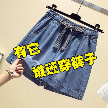 YUDA胖mm牛仔短裤女松紧高腰显瘦百搭学生a字版阔腿裤女适合遮大粗腿牛仔短裙裤女 蓝色 L 【建议100-115斤】 |