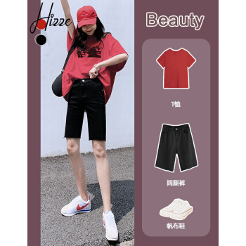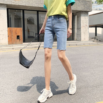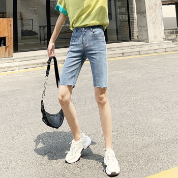 【品质好货】Hizze牛仔短裤女2020年新款高腰显瘦休闲直筒裤夏季薄款紧身外穿五分骑行中裤 黑色 M |
