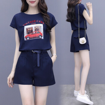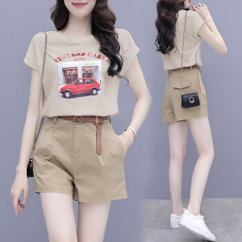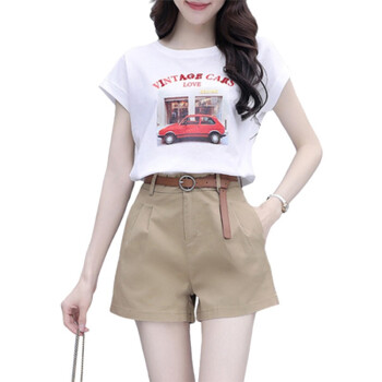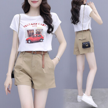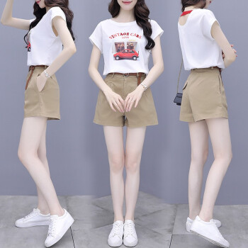 思语林 短裤套装女2020夏季新款时尚洋气减龄气质小个子T恤休闲职业两件套女 白色套装 M |