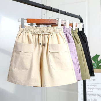 【2条特价】曲诺 2020新款短裤女夏宽松外穿显瘦高腰阔腿黑色运动棉麻休闲大码胖mm 黑色 XL |