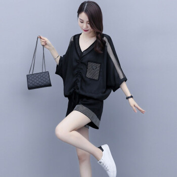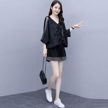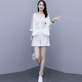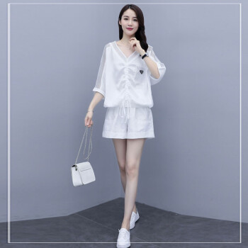 叶紫枫 套装女2020夏季新款镂空拼接短裤韩版时尚休闲百搭套装裤两件套女装 白色 M |