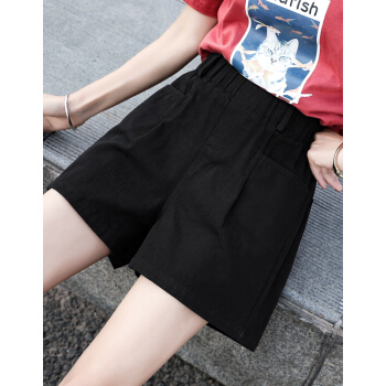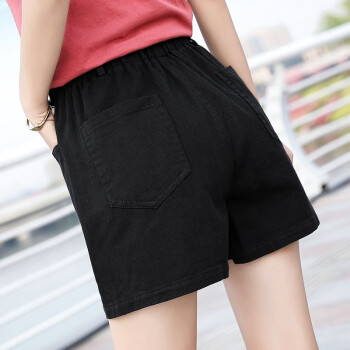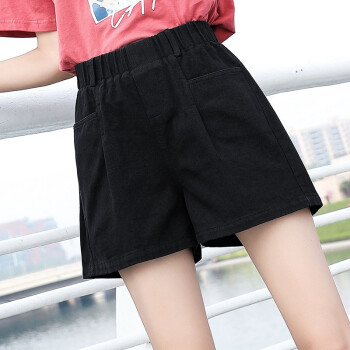 【2件特价】右昀 短裤女夏2020新款韩版高腰显瘦阔腿休闲宽松三分学生薄款热裤女大码牛仔短裤 黑色 L【适合105-115斤】 |