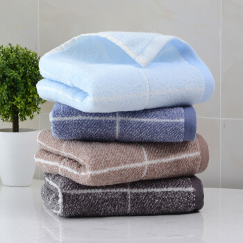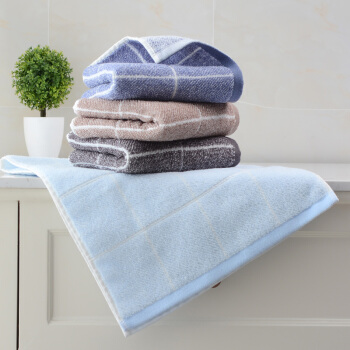 洁丽雅(Grace)毛巾家纺 90g加厚经典格纹系列纯棉强吸水面巾 四条装 中兰/浅蓝/深灰/棕 72*34cm |