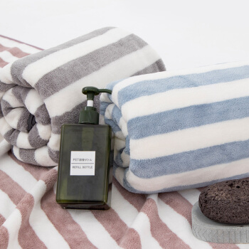 三利 柔软吸水速干大浴巾 条纹洗澡巾裹身巾 70*140cm 银灰色 |