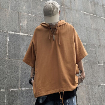 卫衣男连帽ins潮牌新品薄款2020夏季时尚短袖T恤男夏装衣服七分潮流五分半袖男士外套体恤男装 黑色 XXS |