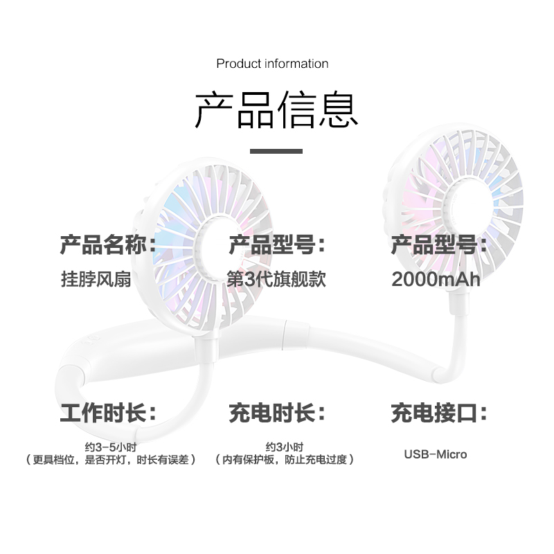 【超值单品】【带彩灯+香薰】第三代旗舰款7叶片挂脖风扇USB充电型【塑料+硅胶/白色】 |