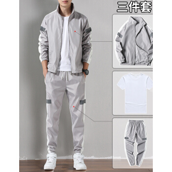 【超值 3件套】卫衣套装男春夏季运动套装2020新款潮休闲男装外套男服饰 801灰色(三件套) XL |