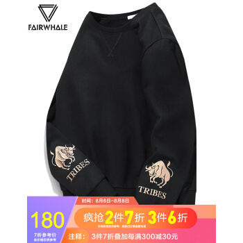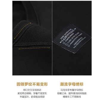 马克华菲卫衣男潮2020秋季新款男装港风刺绣上衣圆领男士外套春秋 黑色 175/92A/L |