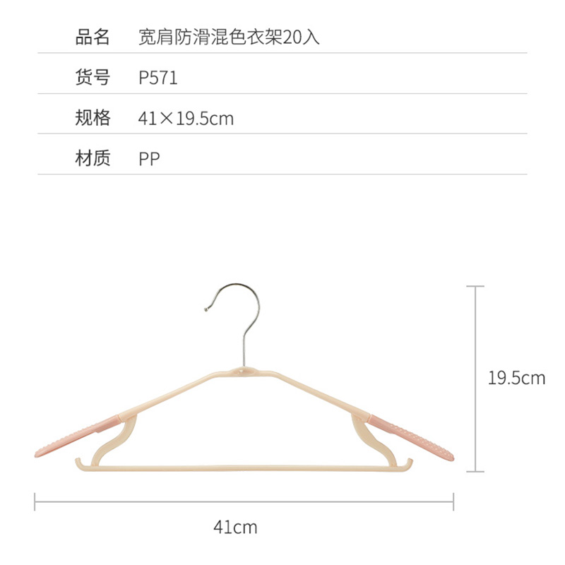宽肩防滑混色衣架20入【PP/混色】 |