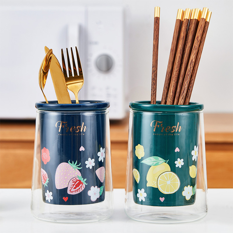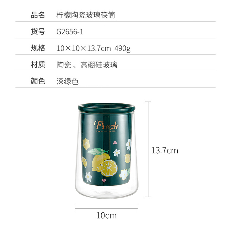 陶瓷玻璃筷筒【陶瓷 高硼硅玻璃/图片色】 |