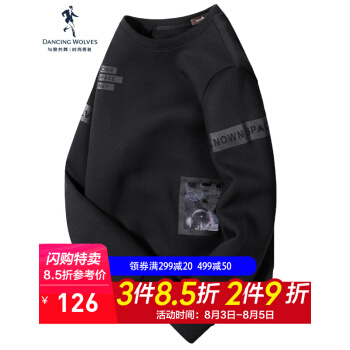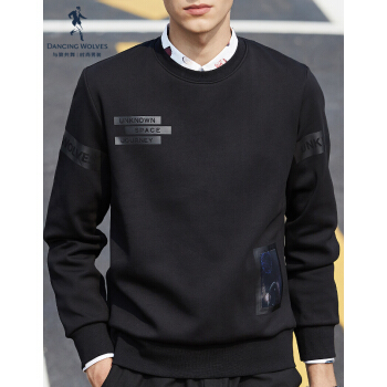 与狼共舞卫衣男2020秋季新款潮流暗纹男装外套韩版圆领印花长袖T恤6615 黑色 175/92A/XL |
