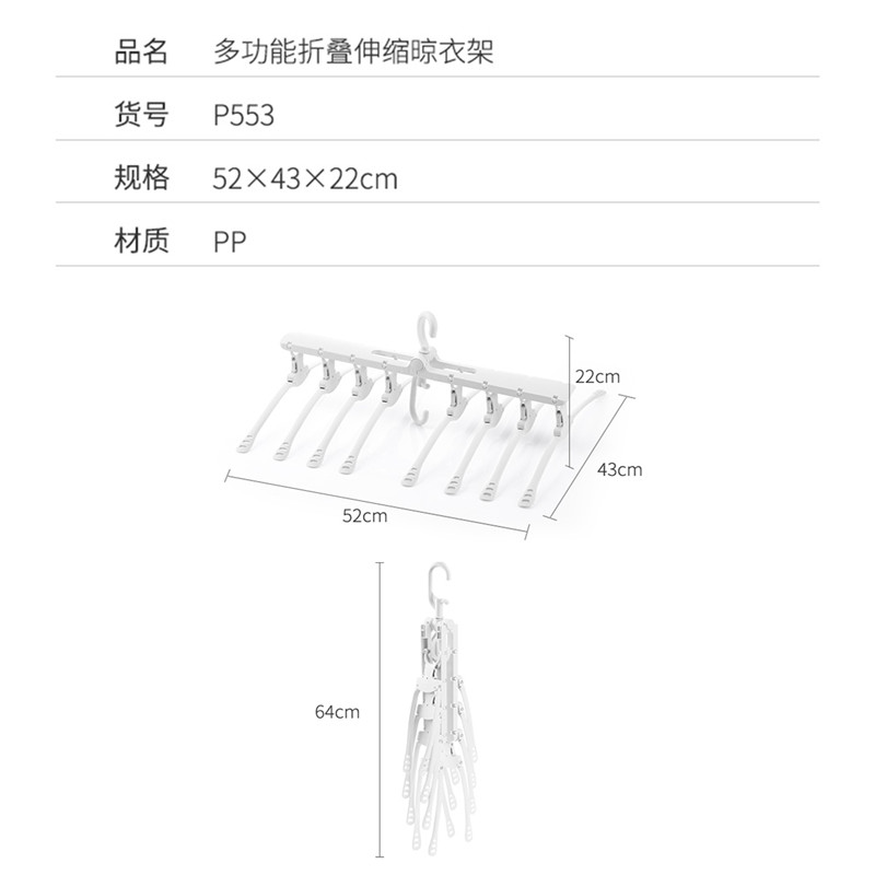 多功能折叠伸缩晾衣架【PP /灰白色(宽为衣架宽度)】 |