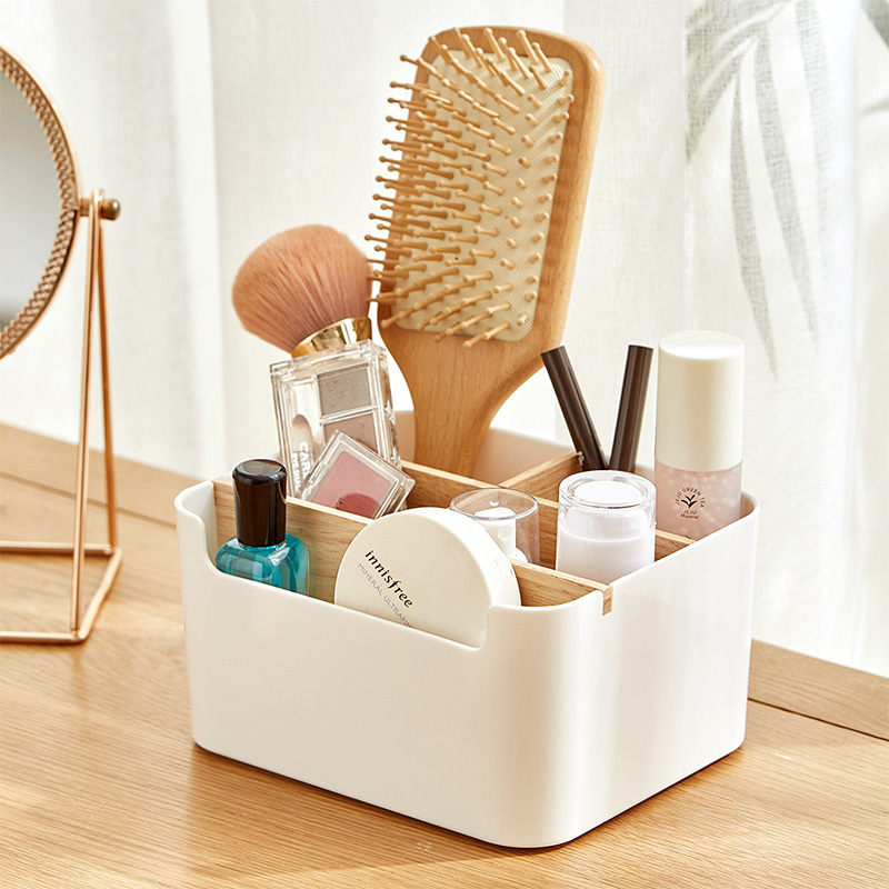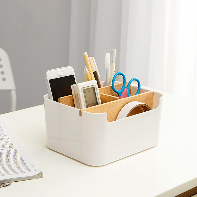 日式桌面多功能五格收纳盒【橡胶木 ABS/白色】 |