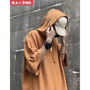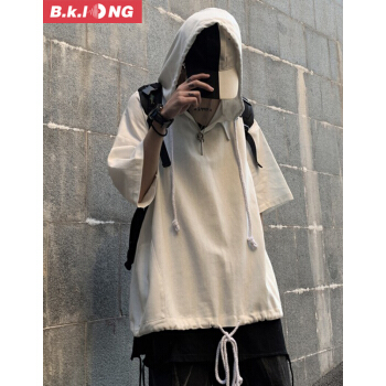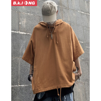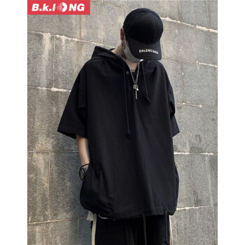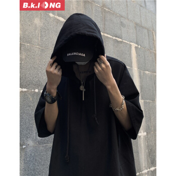 巴克龙夏季新款卫衣t恤男五分袖学生韩版潮流百搭休闲宽松连帽男装青少年短袖t恤时尚半开襟纽扣 黑色 XL |