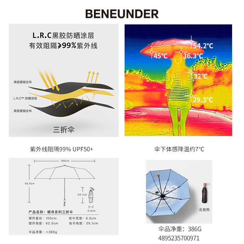 防晒防紫外线遮阳伞小巧便携五折伞晴雨两用【伞布: 聚酯纤维伞杆材质: 铝合金/北极熊】 |