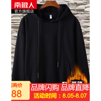 南极人卫衣男连帽2019秋冬新品加绒加厚男士纯棉休闲运动套头卫衣外套男 黑色(11) XL |