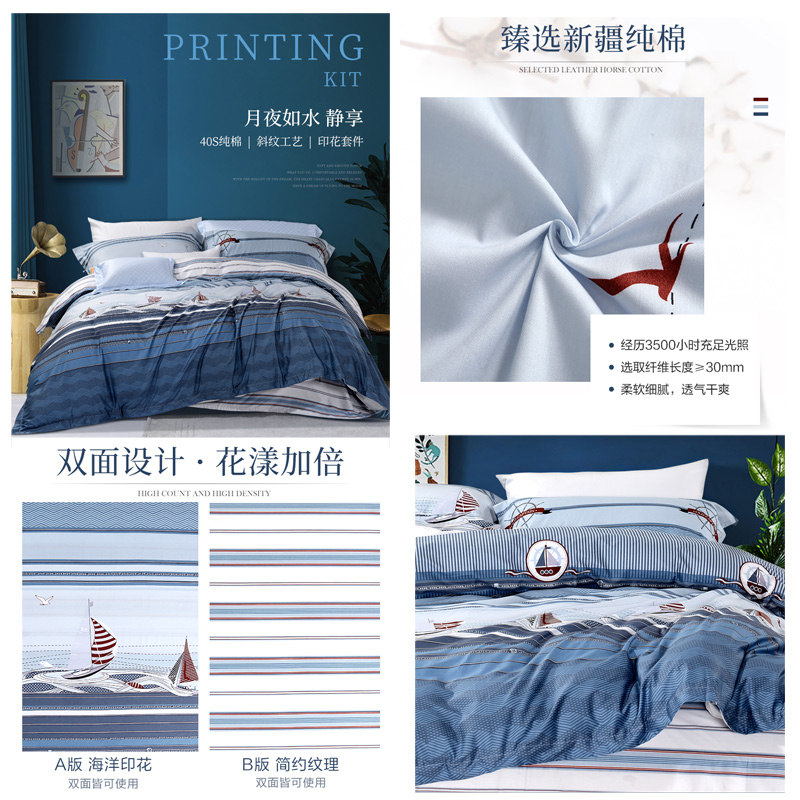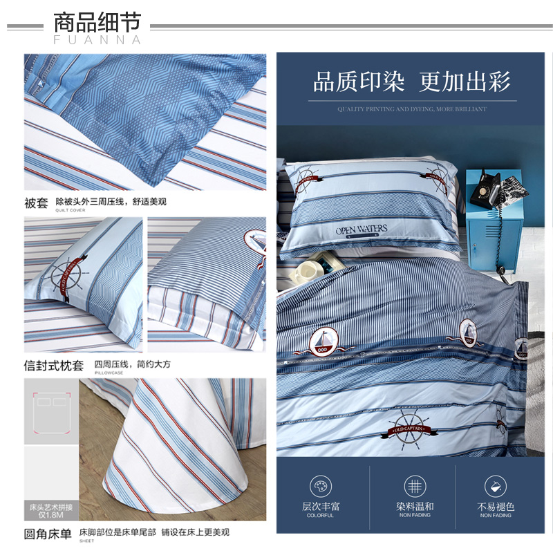 梦幻海洋号 床单四件套(被套1件床单1件枕套2件)(适合1.5米床)【纯棉/蓝】 |