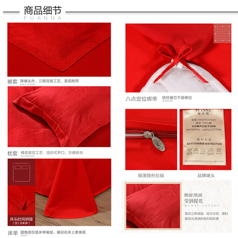 浪漫密西比 床单四件套(被套1件床单1件枕套2件)(适合1.5米床)【纯棉提花/红】 |
