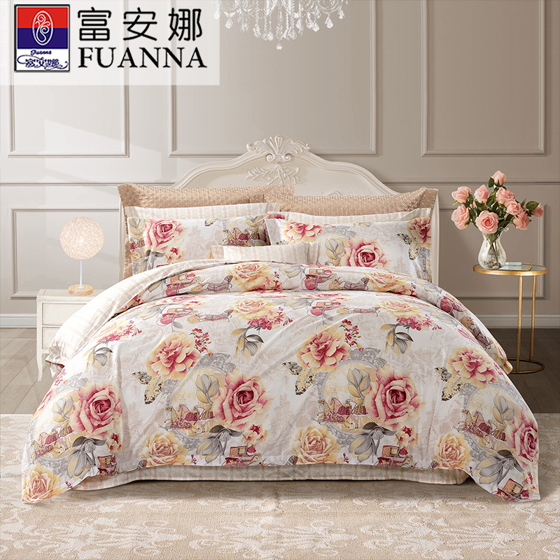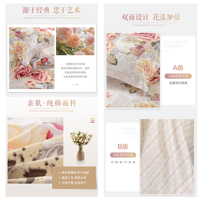 堇色安年 床单四件套(被套1件床单1件枕套2件)(适合1.5米床)【纯棉/粉】 |