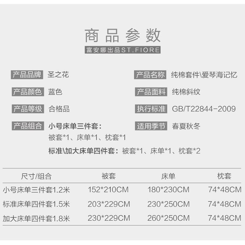 爱琴海记忆 床单三件套(被套1件床单1件枕套1件)(适合1.2米床)【纯棉/蓝】 |