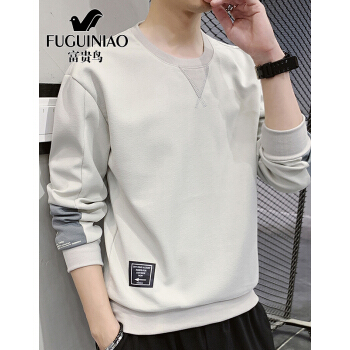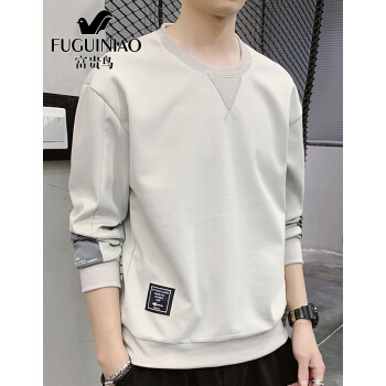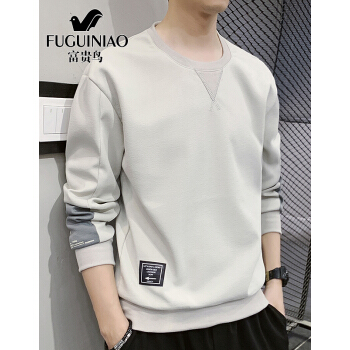 富贵鸟卫衣男圆领2020秋季新款韩版潮流男士长袖T恤休闲秋装上衣 灰色 4XL |