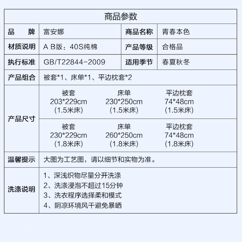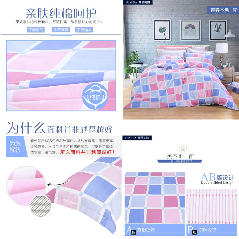 青春本色床单四件套(被套1件床单1件枕套2件)(适合1.8米床)【纯棉/粉】 |