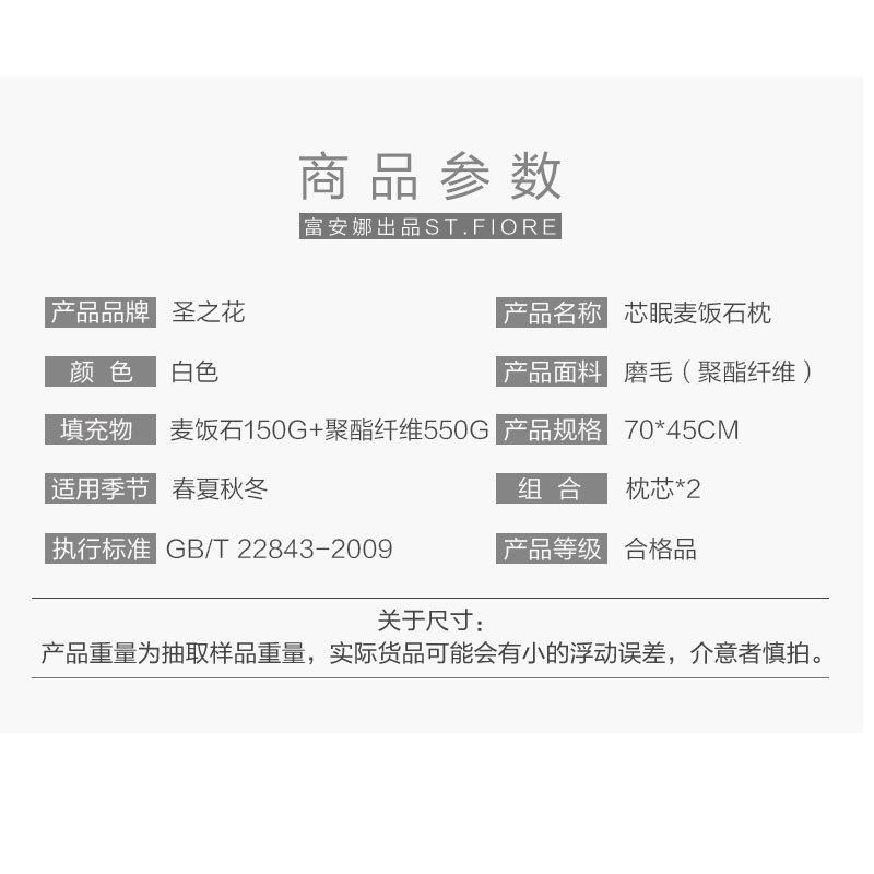 芯眠麦饭石枕(两只)【全涤磨毛布/白】 |
