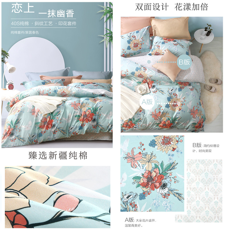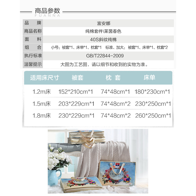 莱茵春色 床单三件套(被套1件床单1件枕套1件)(适合1.2米床)【纯棉/蓝】 |