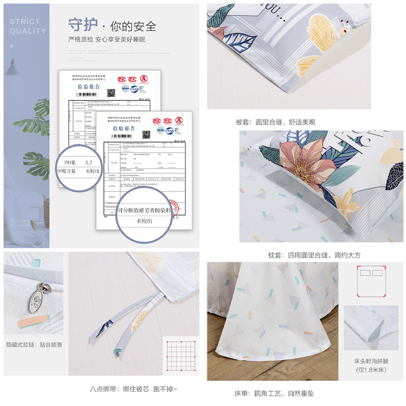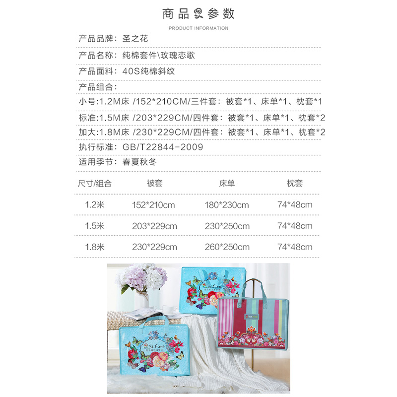 玫瑰恋歌 床单四件套(被套1件床单1件枕套2件)(适合1.8米床)【纯棉/灰】 |