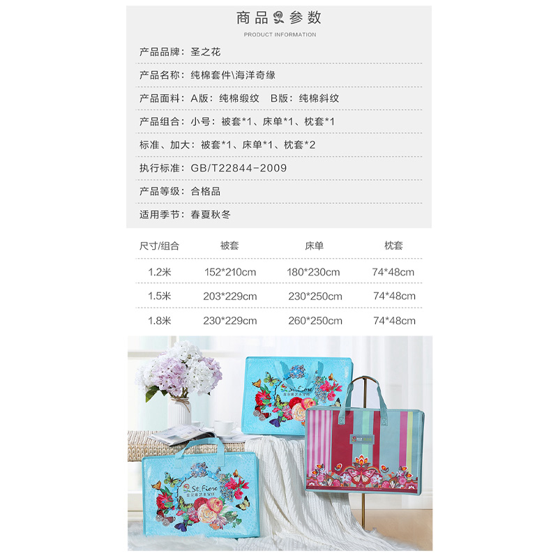 海洋奇缘 床单三件套(被套1件床单1件枕套1件)(适合1.2米床)【A版:纯棉缎纹;B版:纯棉/浅黄】 |