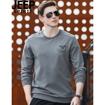 吉普JEEP卫衣男士圆领套头长袖T恤衫休闲宽松2020春秋季潮新款 灰色 L/175 适合140斤左右 |