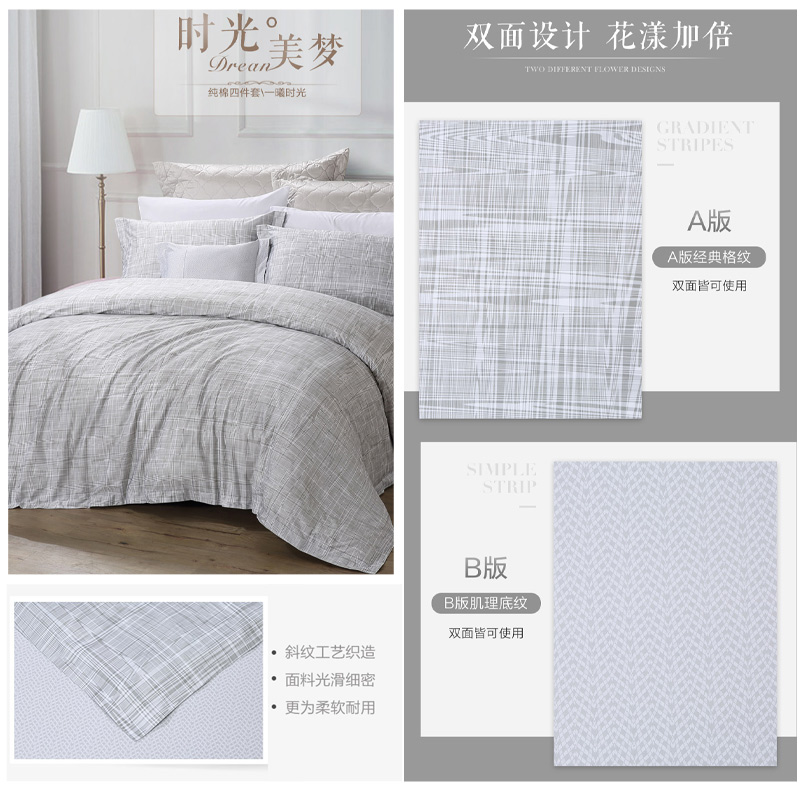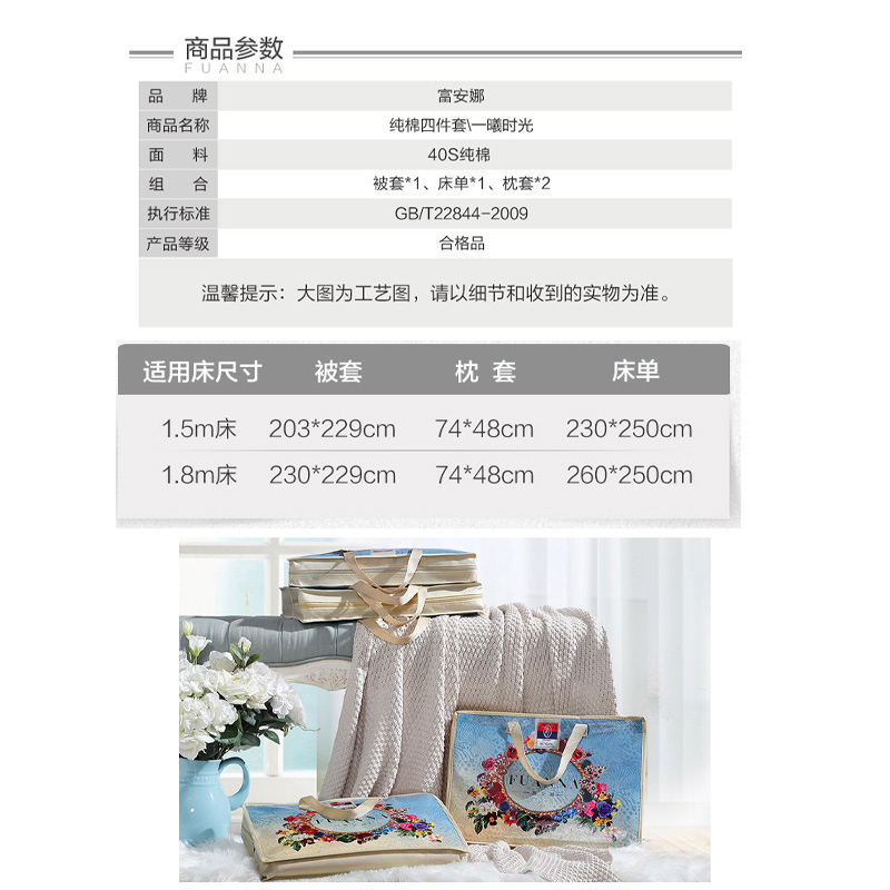 一曦时光 床单四件套(被套1件床单1件枕套2件)(适合1.8米床)【纯棉/蓝】 |