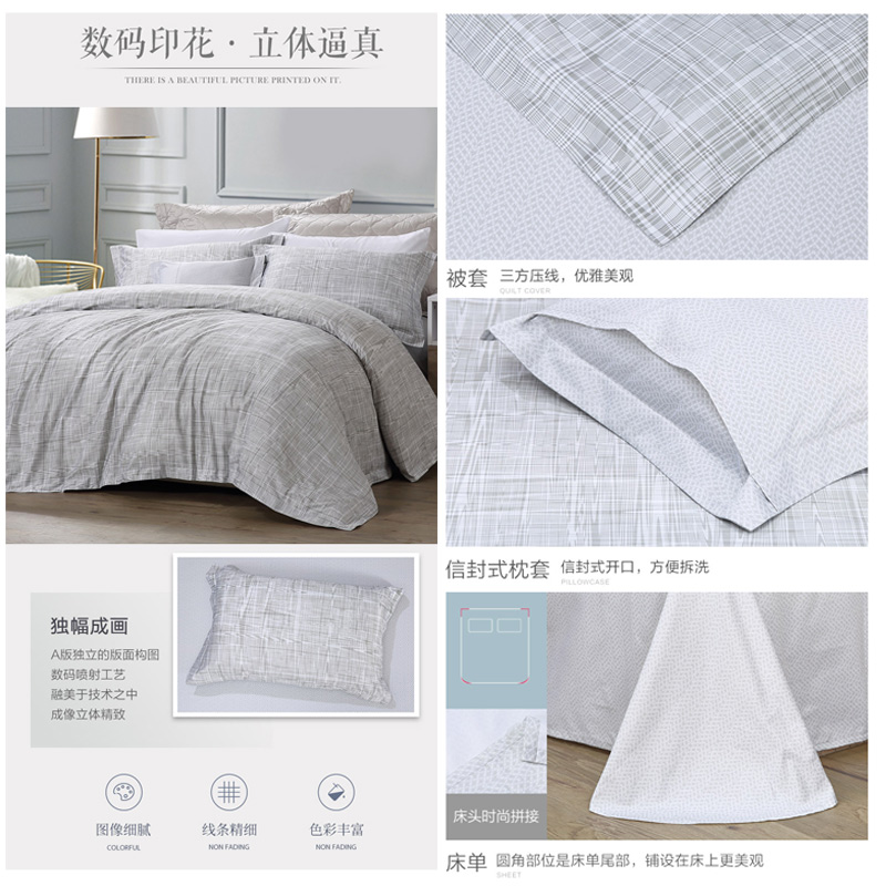 一曦时光 床单四件套(被套1件床单1件枕套2件)(适合1.5米床)【纯棉/蓝】 |