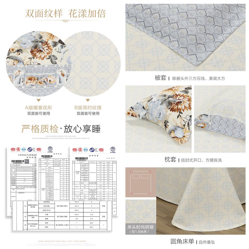 北榭倾城 床单四件套(被套1件床单1件枕套2件)(适合1.5米床)【纯棉磨毛/蓝】 |