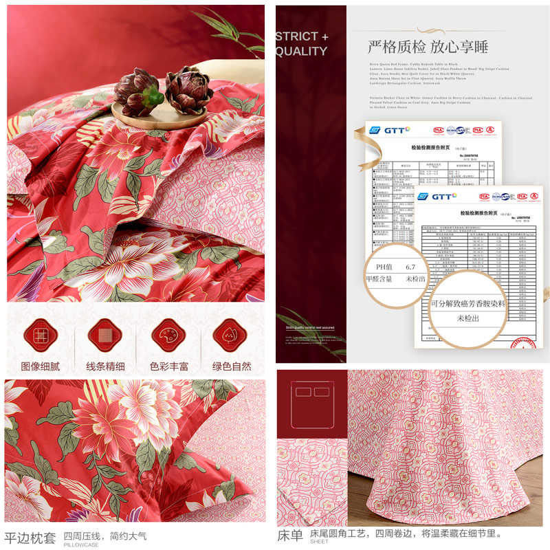 盛世浓情 床单四件套(被套1件床单1件枕套2件)(适合1.8米床)【纯棉缎纹/红】 |