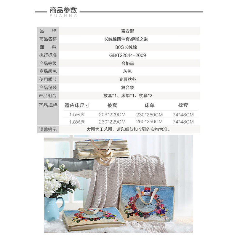 伊斯之诺 床单四件套(被套1件床单1件枕套2件)(适合1.8米床)【长绒棉/灰】 |