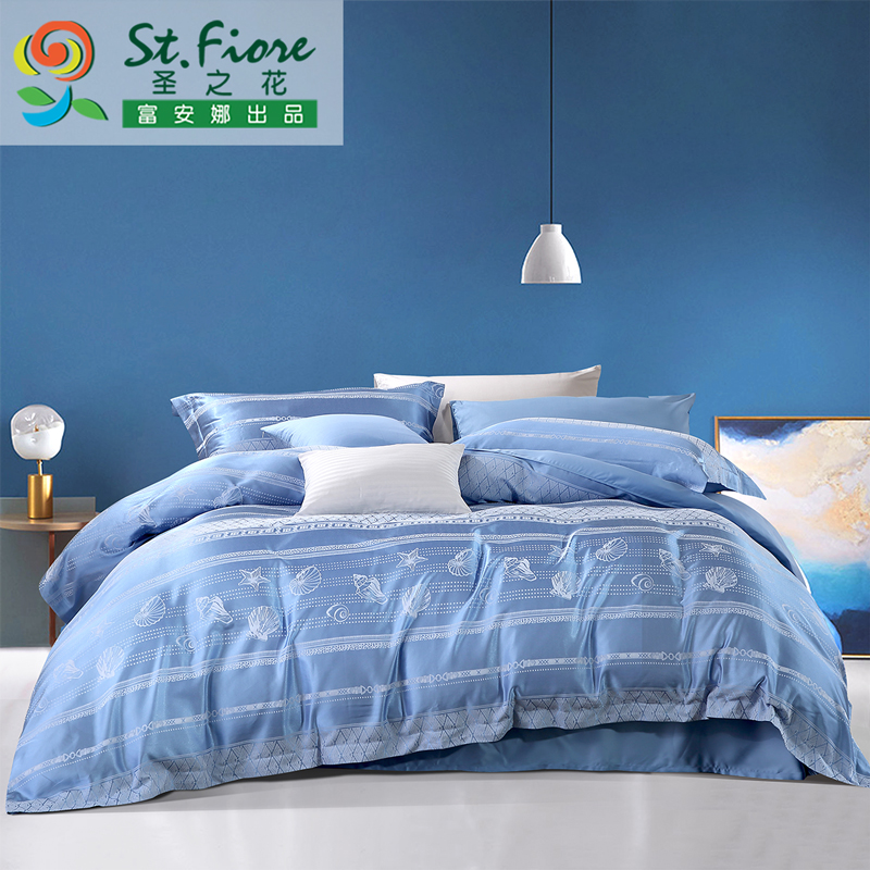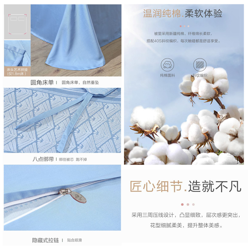 洋畔之旅 床单四件套(被套1件床单1件枕套2件)(适合1.5米床)【A版:涤棉提花;B版:纯棉/蓝】 |