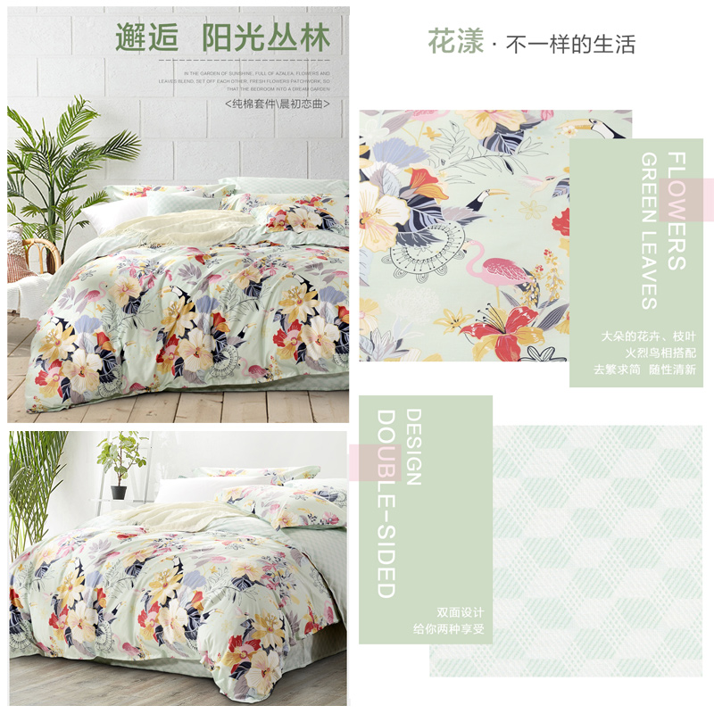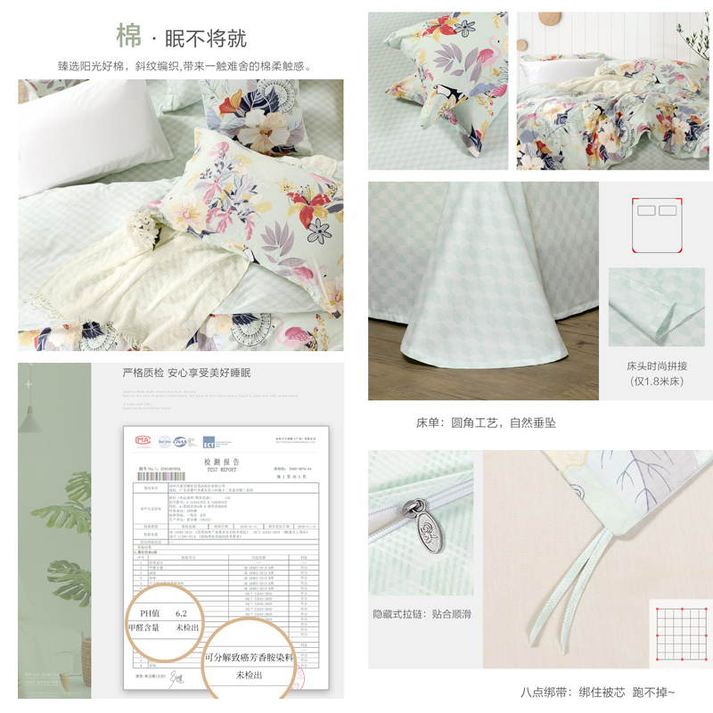 晨初恋曲 床单三件套(被套1件床单1件枕套1件)(适合1.2米床)【纯棉/绿】 |