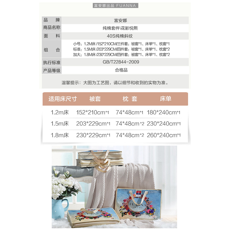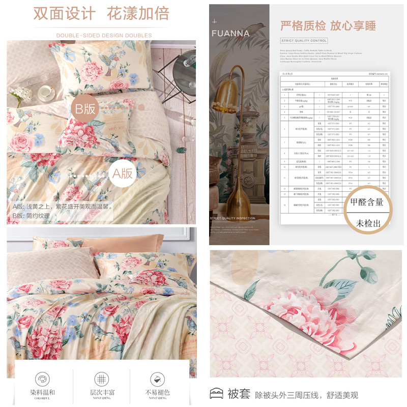 花影悦熙 床单四件套(被套1件床单1件枕套2件)(适合1.5米床)【纯棉/黄】 |