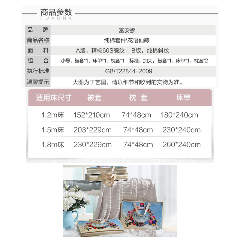 花语仙踪 床单四件套(被套1件床单1件枕套2件)(适合1.8米床)【纯棉缎纹/蓝】 |