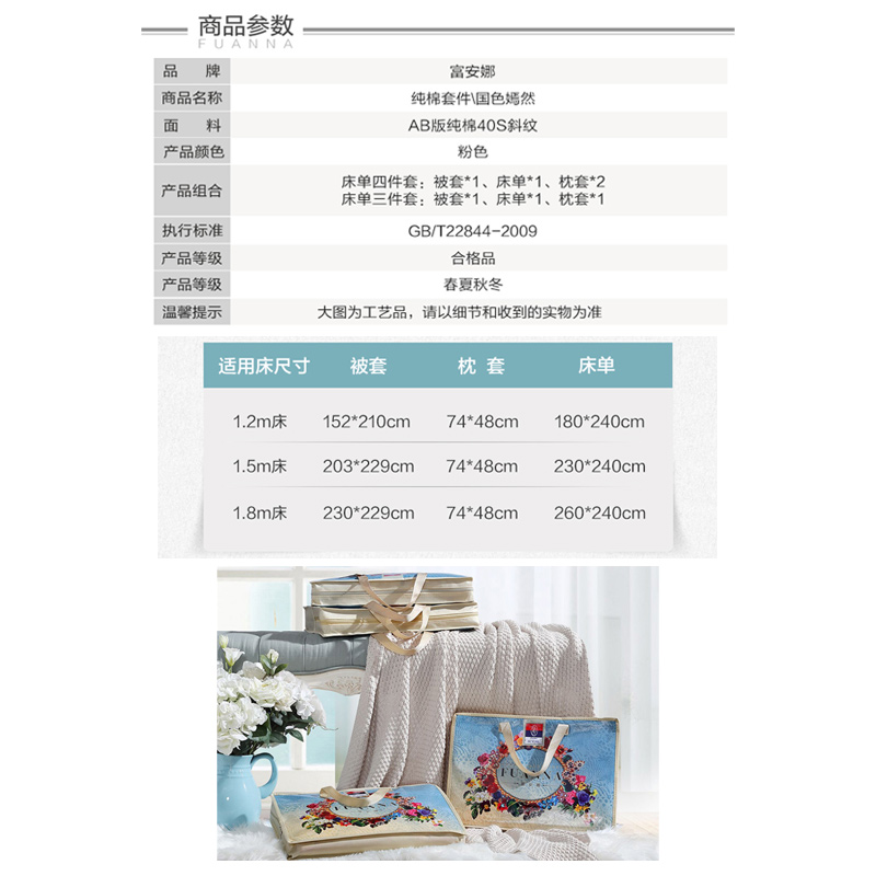 国色嫣然 床单三件套(被套1件床单1件枕套1件)(适合1.2米床)【纯棉/粉】 |