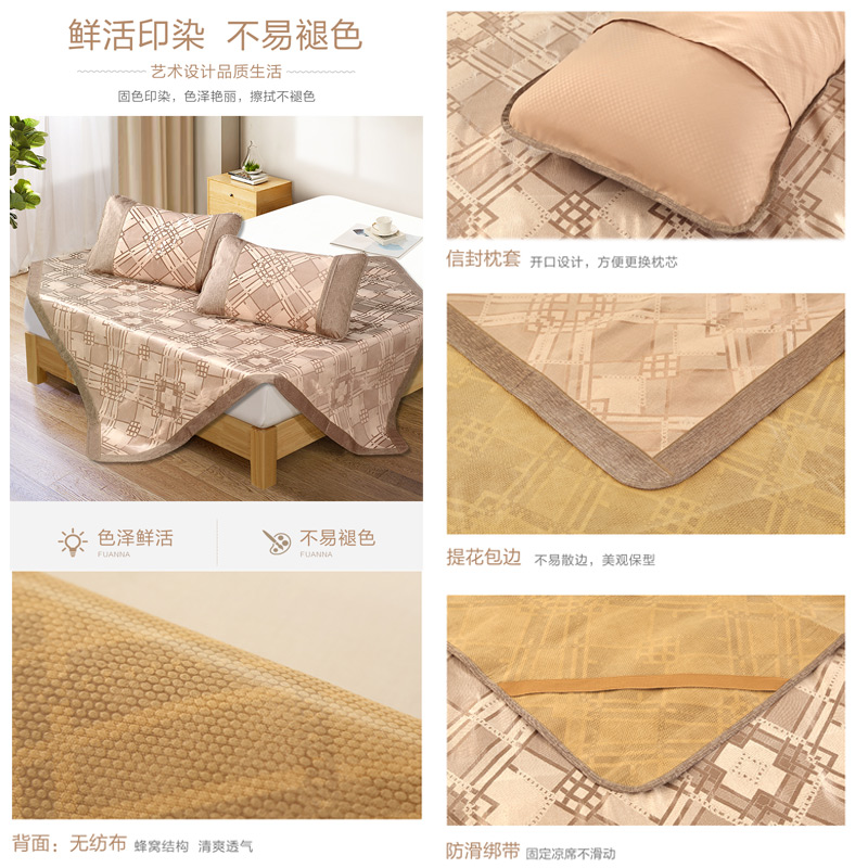 塞林格 冰丝清凉席三件套(凉席1件枕套2件)(适合1.8米床)【聚酯纤维+纤维素材料/咖啡】 |