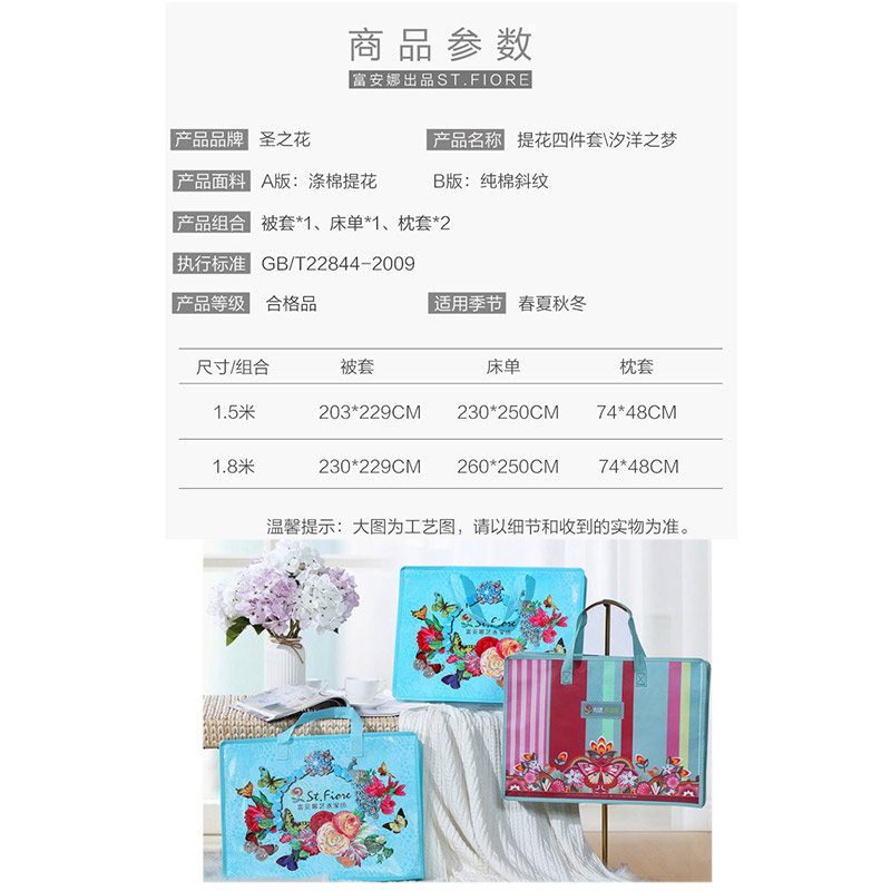 汐洋之梦 床单四件套(被套1件床单1件枕芯2件)(适合1.8米床)【A版:涤棉提花;B版:纯棉/粉】 |
