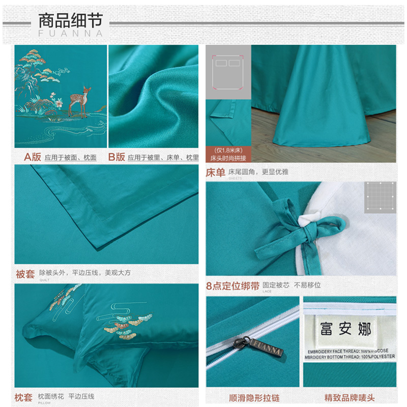 千里江山 床单四件套(被套1件床单1件枕套2件)(适合1.5米床)【精梳棉/绿】 |