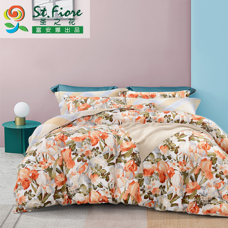 安暖如夏 床单四件套(被套1件床单1件枕套2件)(适合1.5米床)【纯棉磨毛/橙】 |